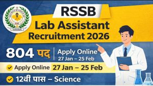 Rajasthan Staff Selection Board (RSSB) / RSMSSB ने Lab Assistant Recruitment 2026 के लिए Advt No. 05/2026 जारी कर दिया है। इस भर्ती के अंतर्गत कुल 804 पदों पर योग्य अभ्यर्थियों का चयन किया जाएगा। जो उम्मीदवार Rajasthan Lab Assistant Exam 2026 में रुचि रखते हैं, वे 27 January 2026 से 25 February 2026 तक ऑनलाइन आवेदन कर सकते हैं।